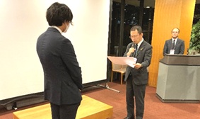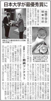 最優秀賞を受賞した日本大学チームには賞状と副賞として商品券10万円が贈呈されました。メンバーからは、軽量化した土の船によって、カチカチ山のたぬきの寿命を延ばすことができるか実践したことや、人数が少ない中工夫して動画を作成したことなどが受賞の喜びとともに語られました。支部長賞は、東畑支部長から現金21,015円の副賞が贈呈されました。副賞には、3人で分けやすい金額として21,015円(千円札21枚と五円玉3枚)とし、五円玉にはもちろん今後も地盤工学会と御縁がありますように、との東畑支部長の願いが込められています。関東地質調査業協会賞は、副賞として商品券2万円が関東地質調査業協会会長の栃本様より贈呈されました。栃本様からは、地質調査業のご紹介をいただくとともに学生が建設業に関心を高めてほしいとの期待と一緒に建設産業を一層盛り上げていきましょうという意気込みが語られました。グッ土動画賞は、GeoKantoの会場に来場された皆さまからの投票により決定し、最優秀賞と同じく日本大学チームが受賞されました。