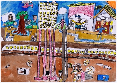 地盤工学会創立60周年、同関東支部創立5周年の記念事業の一環として、一般の市民の方々に「地盤」に対する認識を深めて頂くことを目的とした「絵画コン クール」を実施しました。地盤(大地)という言葉を含むテーマで、小学生、中学生、高校生を対象として絵画を募集したところ、関東地方在住の方を中心に、 小学生39点、中学生・高校生12点、合計51点のご応募を頂きました。応募作品について、下記の3名の審査員の先生方の厳正な審査の結果、20名の方の 作品が入賞されました。