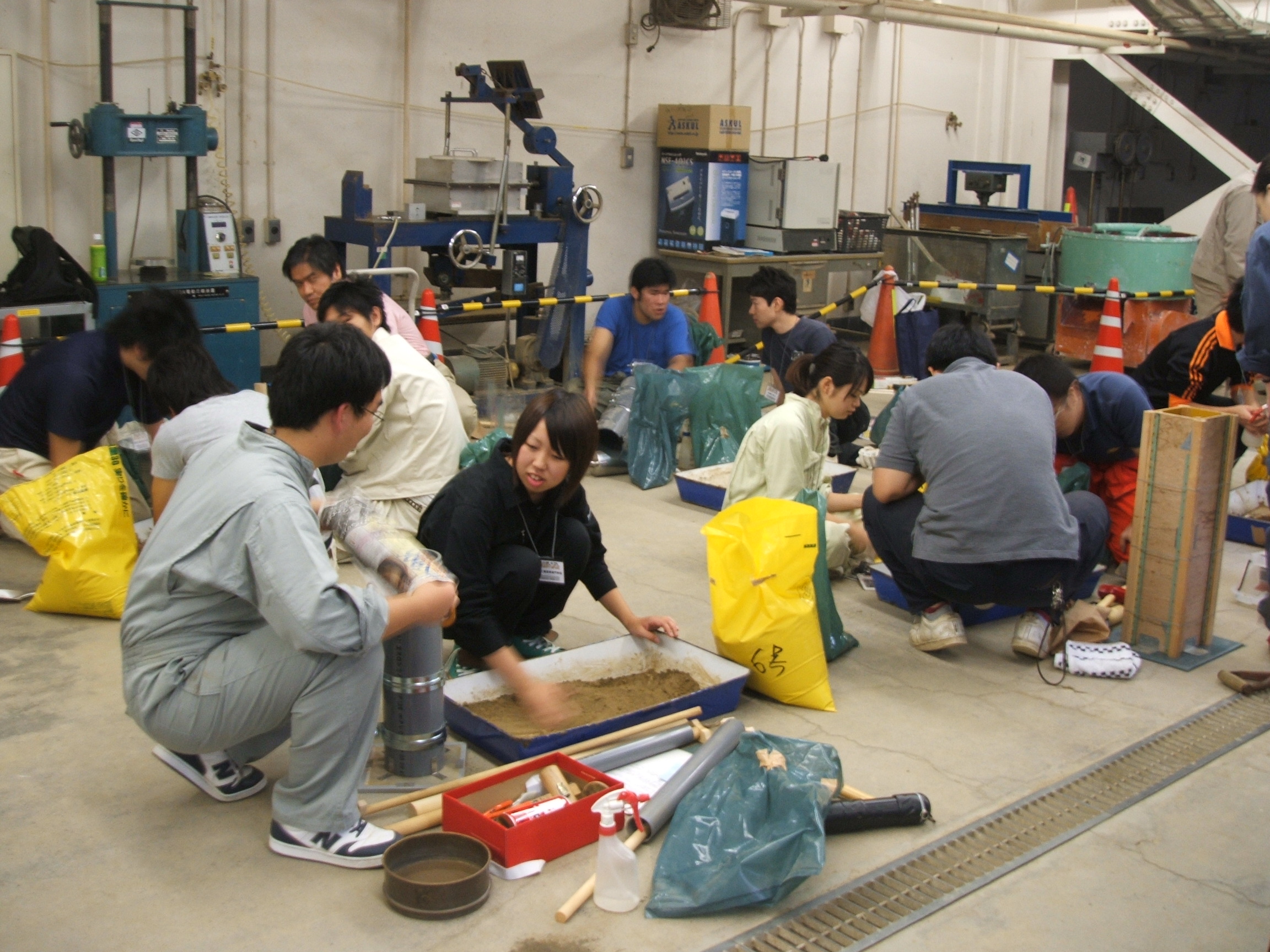 (社)地盤工学会関東支部では,平成19年10月6日(土)に第2回学生対抗ソイルタワーコンテストを実施した.本コンテストは,土質力学の専門知識をベースとして,与えられた4種類の土試料(硅砂,砕石,山砂,ローム)を自由に配合してソイルタワーを作製する学生参加型の行事で,昨年度から開催されている.コンテストでは,耐荷重(強さ),重量(軽さ),高さ,美しさ(芸術性),プレゼンテーションが審査され,ソイルタワー値(載荷加重/タワー重量)Highest Tower(タワー高さ),Artistic(芸術性,表現力),の各部門の1位と総合点1位のチームが表彰された.第2回目の今年度は大学,高専合わせて8校9チーム(表−1)が参加し熱戦が繰り広げられた(写真−1).また,特別ゲストとして,本大会の審査委員長を努められた太田秀樹教授(東京工業大学)にソイルタワー作製に参加していただいた(写真−2).