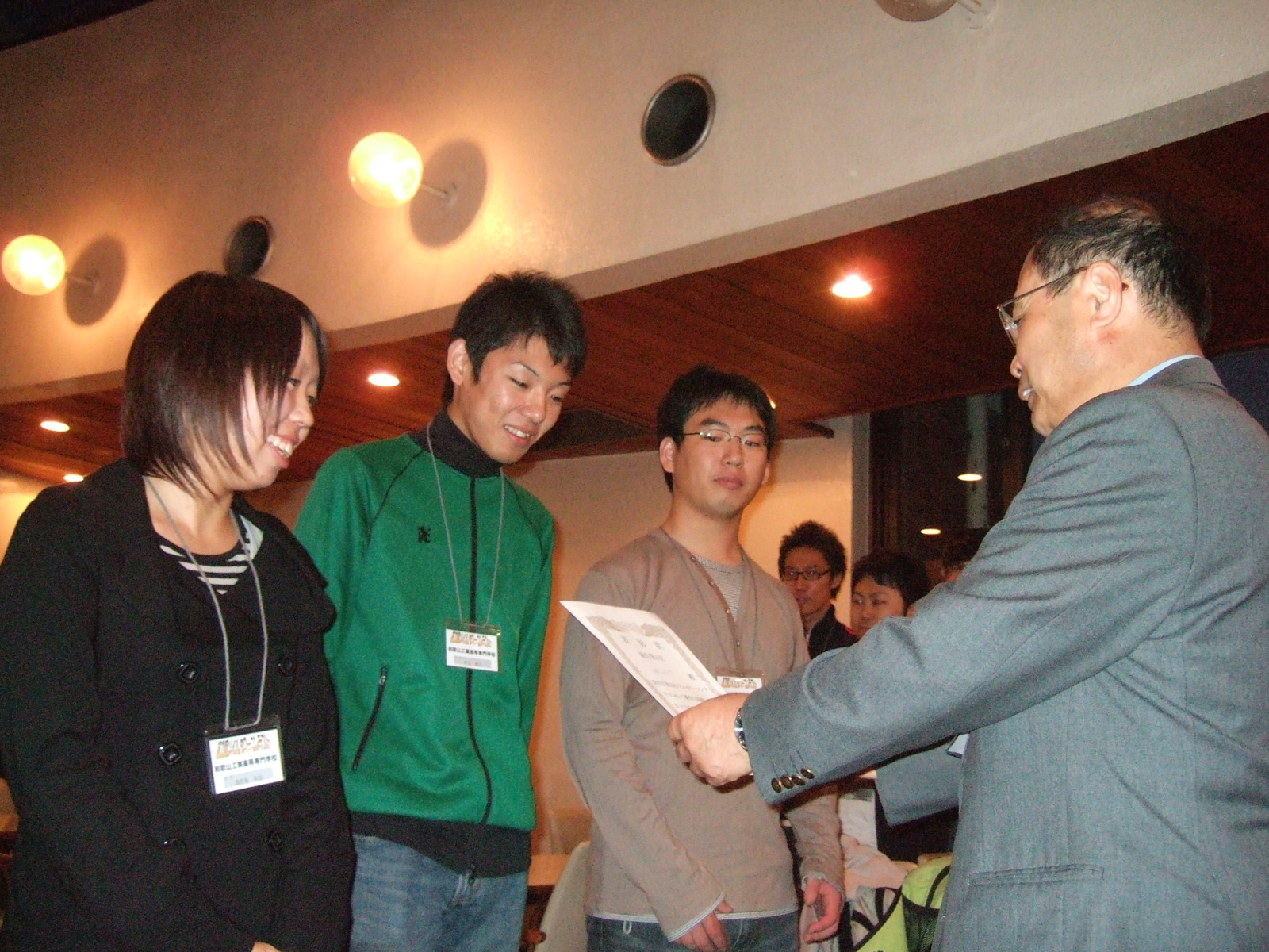 コンテスト終了後は直ちに表彰式が行われ,ソイルタワー値部門,Highest Tower部門,Artistic部門各1と総合1位のチームが発表され表彰された(写真−7).第2回ソイルタワーコンテスト入賞チームは表−2に示すとおりである.表彰式後に行われた懇親会では参加者同士の交流も盛んに行われた.