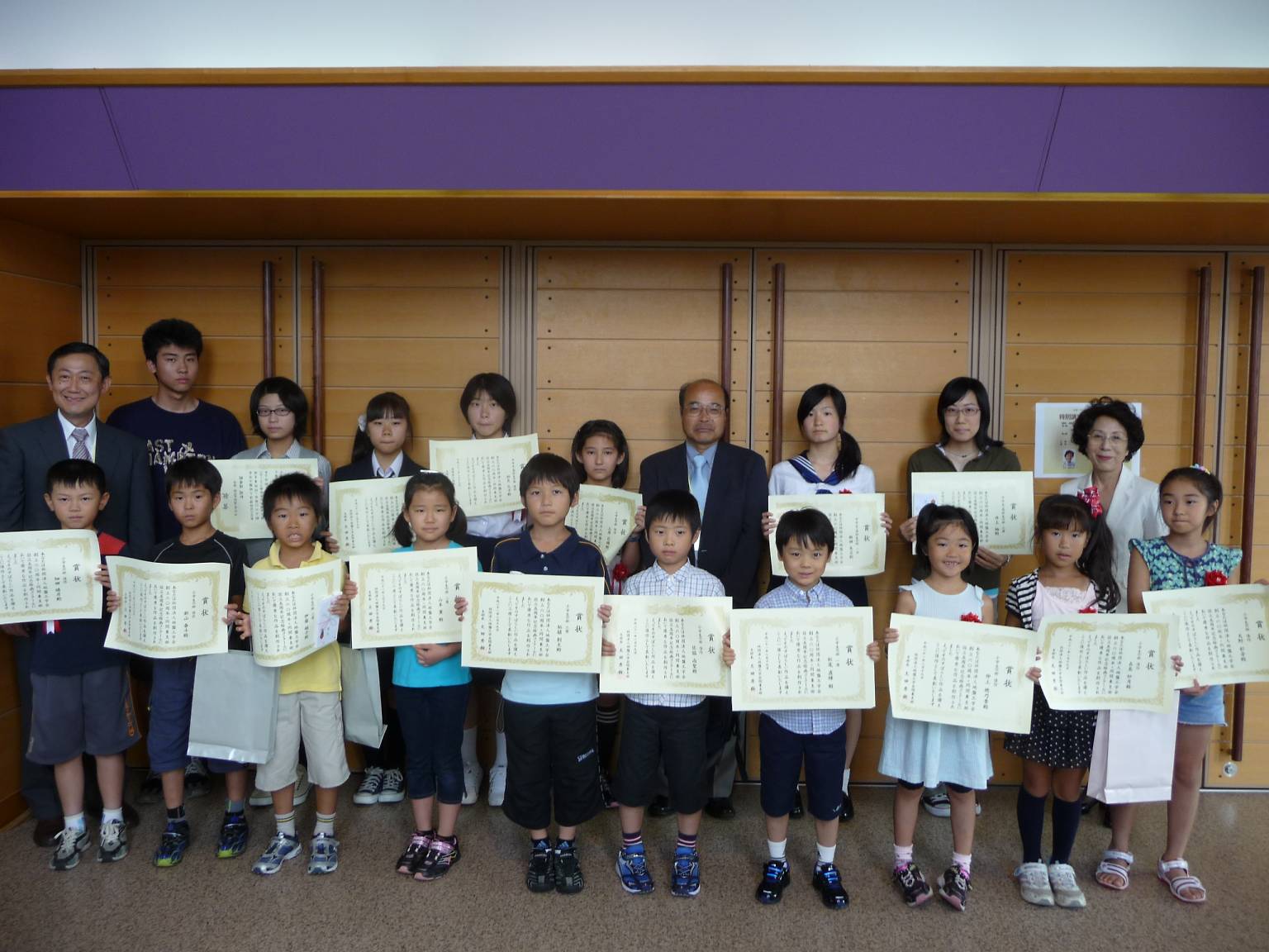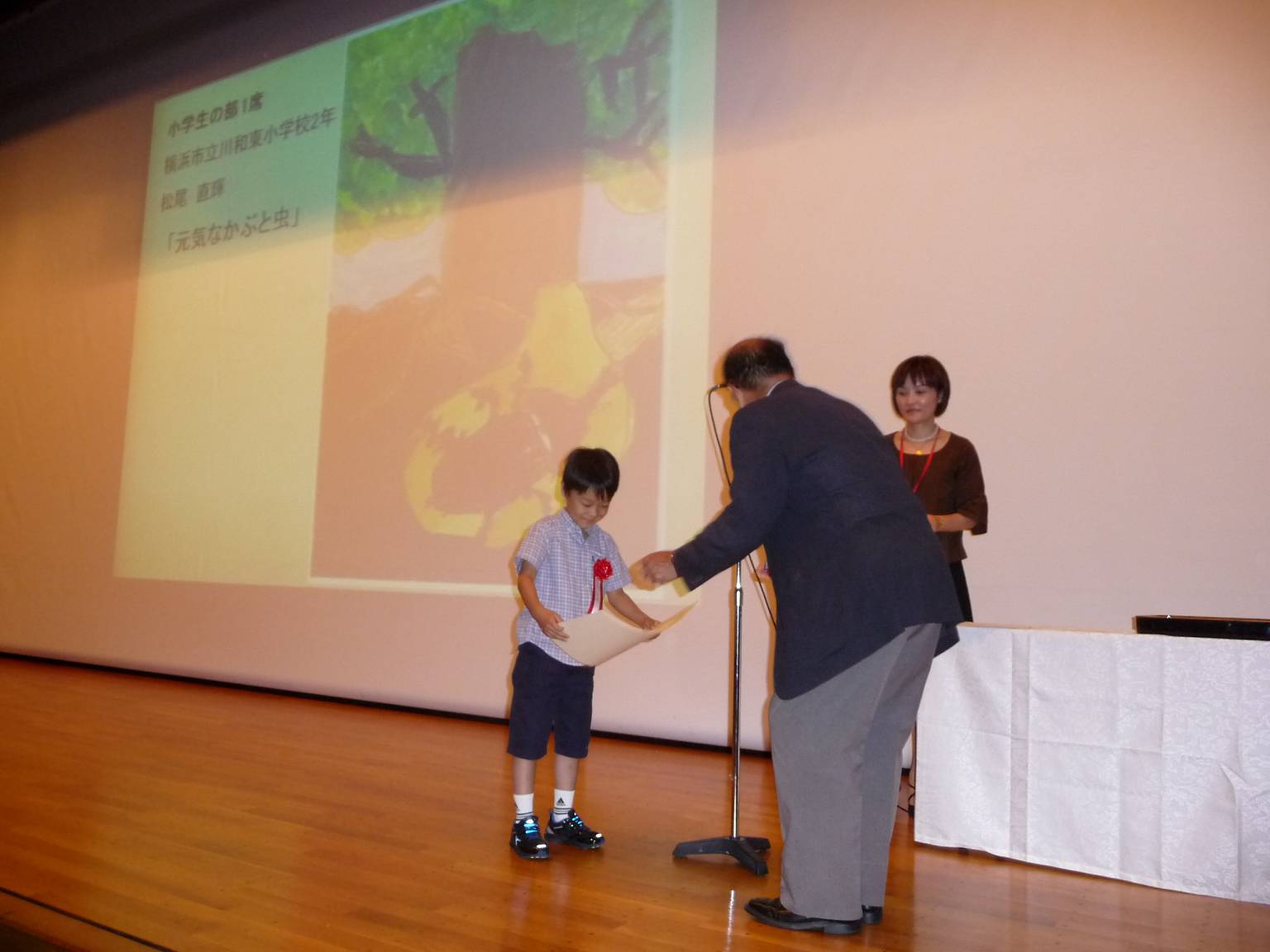 入賞作品は、第44回地盤工学研究発表会の会場である関東学院大学金沢八景キャンパスで8月18〜20日に展示され、表彰式は、同19日に同大学ベンネットホールでとり行われました。表彰式では、緊張した面持ちの小さな受賞者達に、太田秀樹関東支部長が腰をかがめて、一人一人に表彰文を読み聞かせながら賞状を授与され、ほのぼのとした心温まるセレモニーとなりました。最後に、審査委員長に代わり絵画コンクール実行WGの岸田隆夫氏より、講評の紹介がありました。応募者の皆様に心よりお礼申し上げます。入賞作品は関東支部HPに掲載しております。