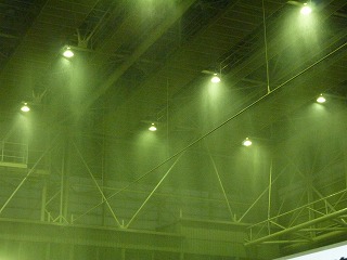 大型降雨実験施設では、実際に散水の様子を見せていただきました。この散水装置は世界最大の規模・能力を有し、毎時15〜200mmの雨を降らせることができるそうです。実際散水を目にすると迫力があり、また現実の降雨と何ら変わらない印象を受けました。