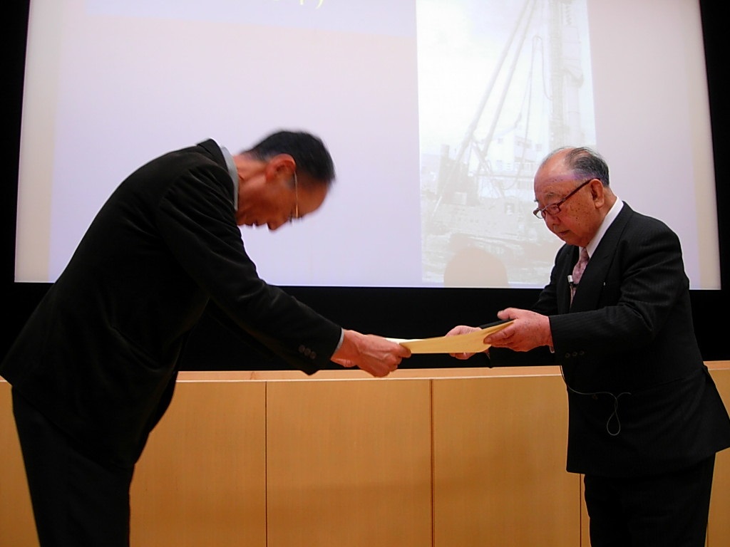 本講演会には, 52名が参加し,ディスカッションでは,当時の工夫に対する質問もあれば,技術の発展における勘所はといった今後に活かすための助言を求める質問もあり,盛り上がりました。会の終わりには,吉田様に対して,國生剛治関東支部長より感謝状が贈呈され,和やかに閉会いたしました。
