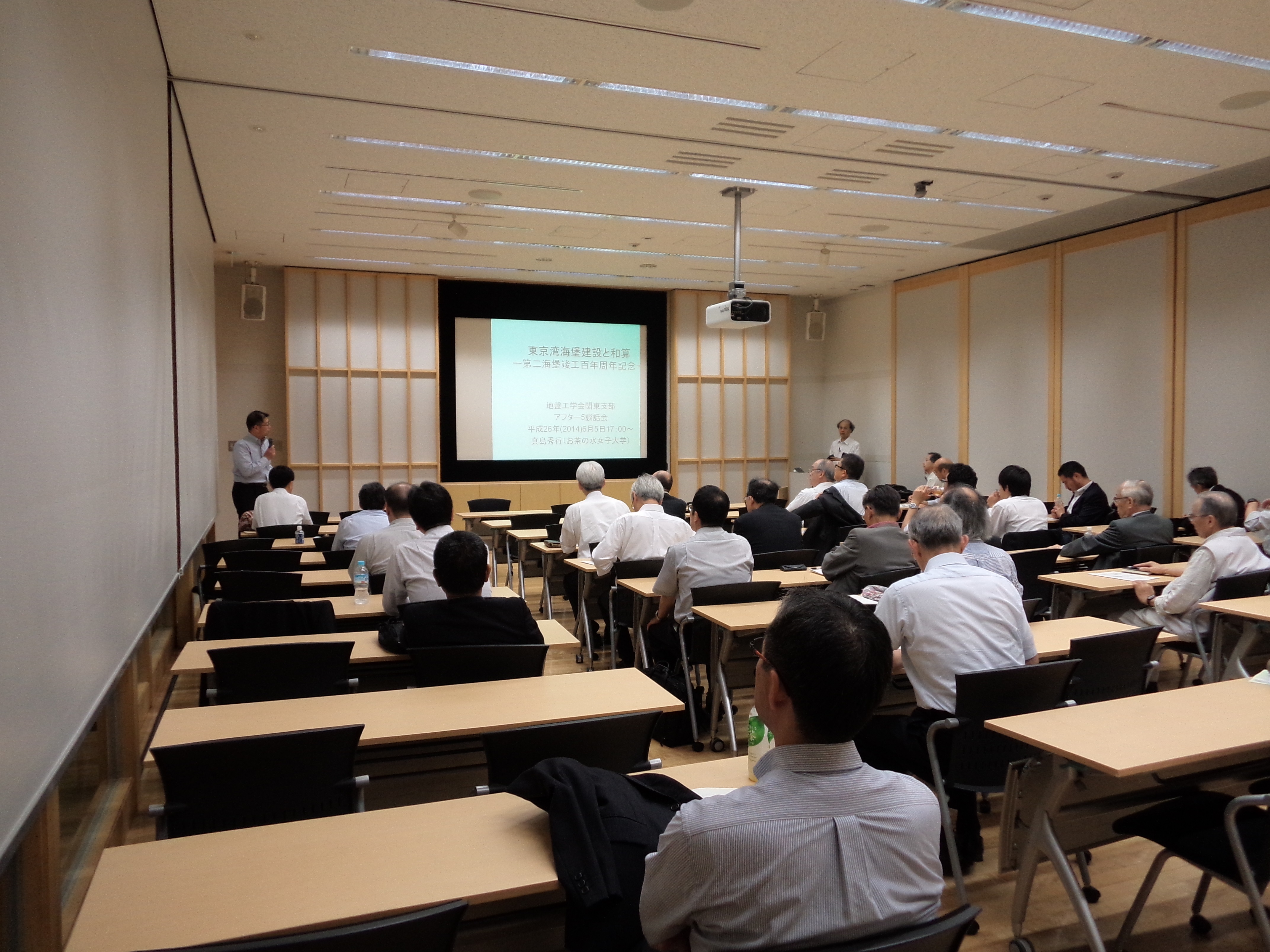 平成26年6月5日(木)17:00-18:00に地盤工学会地下会議室にて、お茶の水女子大学真島秀行 教授による「東京湾海堡建設と和算」の講演会が開催された。この講演会は主催 地盤工学会関東支部会員サービスグループ、共催 関東支部、江戸期以降の土木史跡の地盤工学的分析・評価に関する研究委員会で行われた。当日関東で今年の梅雨入りが発表され小雨が降る中、大学関係、公官庁、ゼネコン、コンサルタント等36名の方にご参加いただいた。