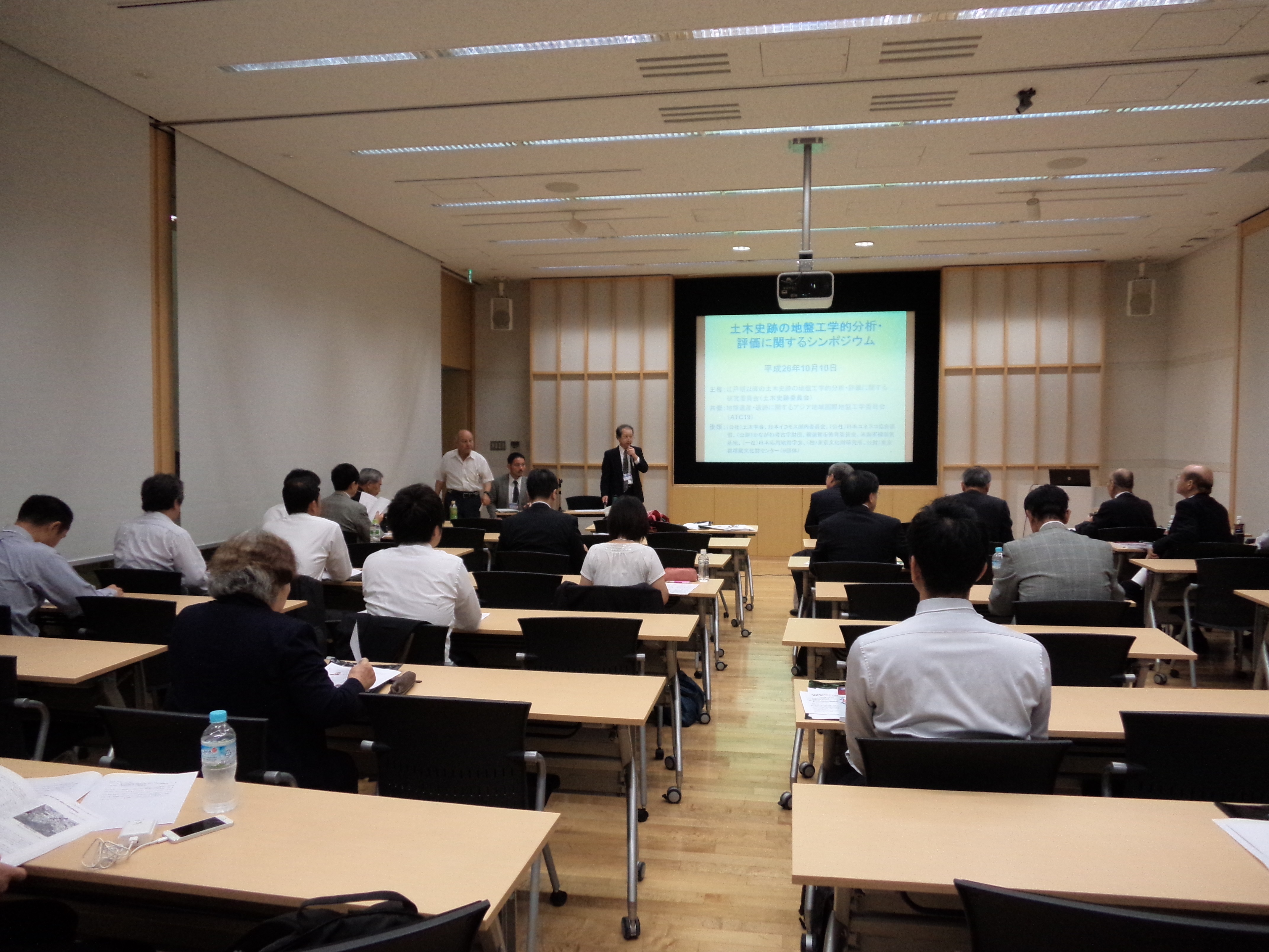 平成26年10月10日(金曜日)の午前9時から17時20分まで地盤工学会で「土木史跡の地盤工学的分析・評価に関するシンポジウム」が開催された。ATC19との共催であり関東支部のみならず、全国さらには海外から中国、カサフスタンの参加もあり、参加者は全体で74人であった。発表論文に関しては、一般発表は30編(委員会以外から22編)であった。