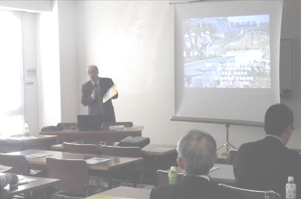 話題提供(2) 栃木県内の宅地造成・液状化・斜面災害等の地盤リスク 海野 寿康先生:海野先生は,土質力学の観点から,液状化の起こる仕組みをその用語の定義とともに基礎的なところから応用的なところまで丁寧に説明して頂きました。また,東日本大震災を例にとり,栃木県内の被災状況,東北地方における宅地の被災状況,火山灰質土の震災被害の傾向とその対策工などについてご講演いただきました。宅建関係や不動産関係者に,地盤分野の詳細を知って頂く良い機会となりました。