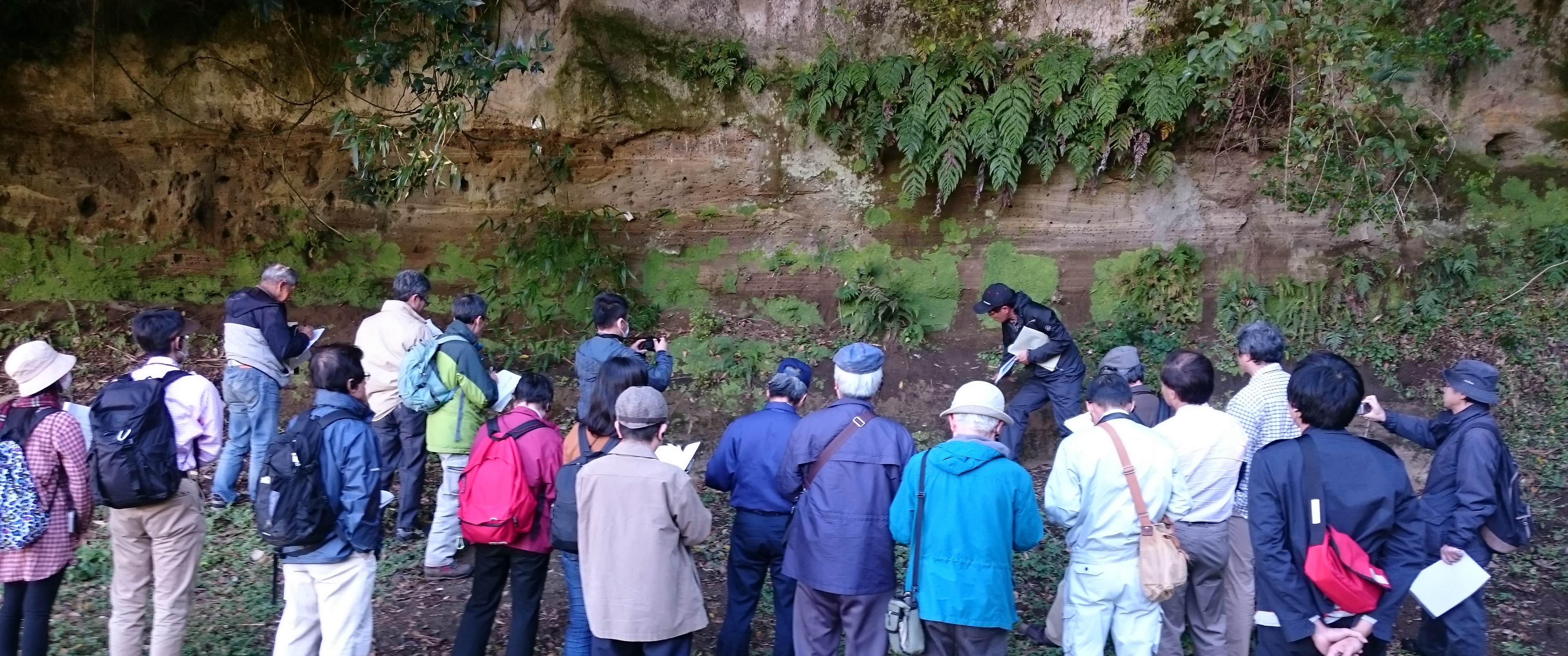 平成22年10月に出版しました「大いなる神奈川の地盤 ~その生い立ちと街づくり~」を体感する企画として,11月12日(土)に野外巡検「箱根火山起源の地質(テフラ)と神奈川県西部の地形」を開催しました。今回は,神奈川県立生命の星・地球博物館の笠間友博様を講師にお迎えし,箱根火山起源の地質や大磯丘陵周辺の地形を観察しました。 |