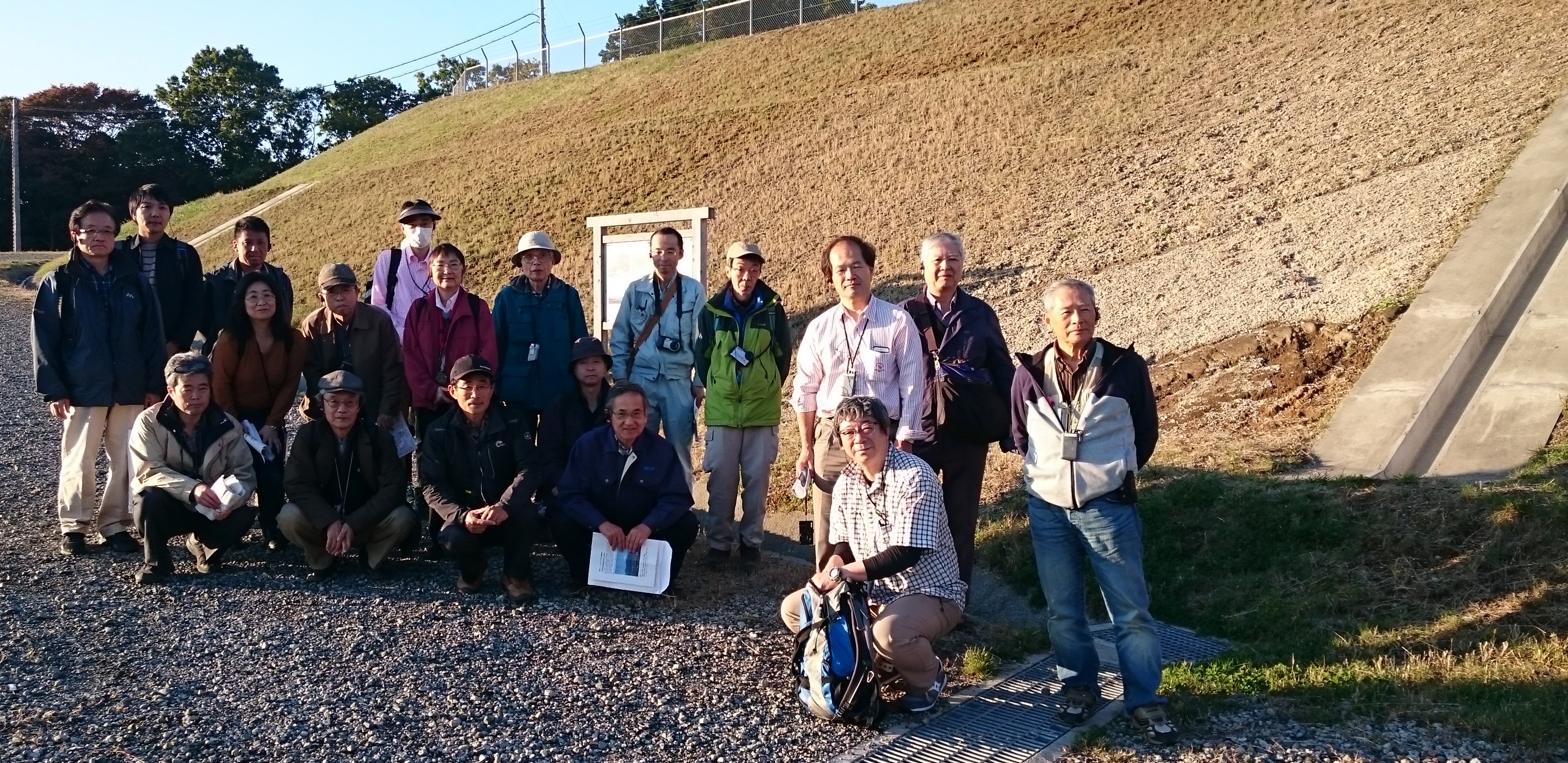 写真-2 参加者・講師の集合写真(きらめきの丘おおいの保存露頭前にて) |