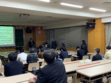 山梨大学大学院 准教授 後藤 聡 先生から「小型宇宙線ミュオン検出器を用いた地盤構造物の非破壊探査技術」というテーマでご講演いただきました。宇宙線ミュオンを用いた物質の密度測定に関して、ミュオン検出器を小型にするメリットとその研究成果について最新情報の説明がありました。
