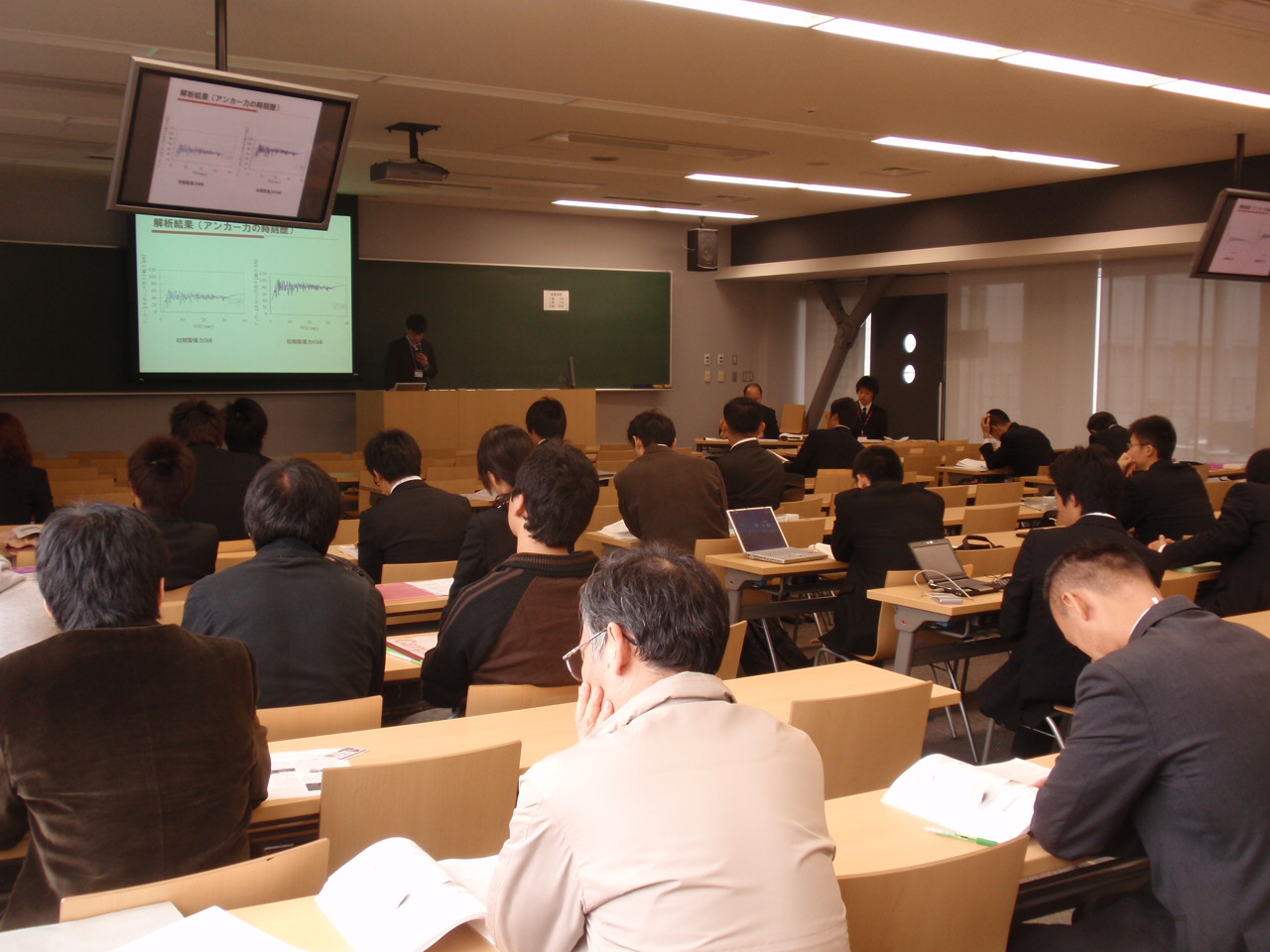 平成19年10月31日(金)、11月1日(土)の2日間にわたり、千葉県船橋市の日本大学理工学部船橋キャンパスにおいて第5回関東支部発表会(Geo-Kanto2008)が開催されました。例年は2日間とも平日開催でしたが、前回参加者の意見を反映して、今回初の試みとして2日目を土曜日開催としました。発表会では、一般発表、研究委員会によるディスカッション・セッション(DS)、特別講演、意見交換会が行われ、参加者は177名(DS、特別講演のみの一般参加者は除く)でした。一般発表は117件の投稿があり、13のセッションに分かれて発表を行い、DSは5セッションが実施されました。特別講演は、千葉県県土整備部長の橋場克司氏を講師としてお迎えし「千葉県の社会資本整備」と題した講演をしていただきました。今回より、広く一般に開かれた発表会とするため、DSと特別講演のみの聴講者は無料で参加できることになり、特別講演には約10名の一般参加者が見受けられました。特別講演の後は、会場を同キャンパス内のホールに移して、意見交換会を開催し、冒頭に優秀講演者賞の表彰式が行われました。今回の優秀講演者賞の受賞者は以下の通りです。なお、Geo-Kanto2008を開催するにあたり、関東支部千葉県Gを始め、千葉県県土整備部、本学事務局の方々のご協力をいただきましたこと、ここに記して感謝申し上げます。